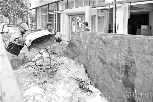 图为7月24日,工作人员在遭无人机袭击的建筑现场进行清理工作。 (新华社发)