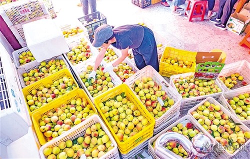 “今年我们强化果园科学管理,专门从河源连平和江西等地聘请了专业的技术工人对基地进行管护,今年的鹰嘴桃品质相较往年有所提高,首批采摘的果子甜度达到了16.7,350亩桃林预计能产约30万斤桃果,总产值300万元左右。”采摘基地负责人钟林说。
