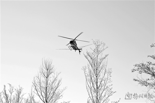在直升机“飞防”作业现场,记者看到,工作人员严格按照生态环保的有关用药规定,将噻虫啉药剂调配到塑料桶内,再通过管道输送到直升机携带的撒药设备上。灌装完毕后,直升机飞上蓝天,按照预定路线对3.1万亩防治区域进行防治作业。