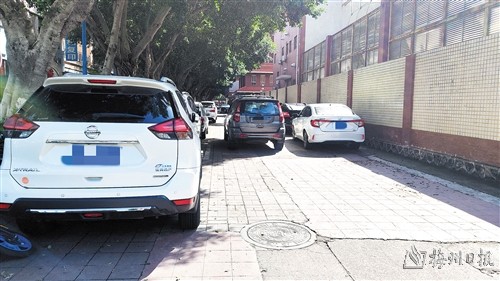 接到报料后,记者来到了梅县区新县城吉隆街,在靠近府前大道的路口,记者看到道路右侧的车道上停了两排车辆,其中一排车辆停放在了规划的停车线内,而另一排车辆停放的位置则没有施画,两排车中间留下的位置只允许一辆车通行。当行人经过该路段时,后方的车辆只能尾随缓慢行驶,行人发现后方来车,也只能找车辆停放的空隙避让,看得让人胆战心惊。