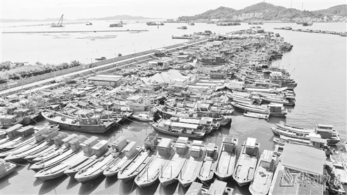 图为在广东省潮州市饶平县三百门渔港拍摄的回港避风的渔船。
