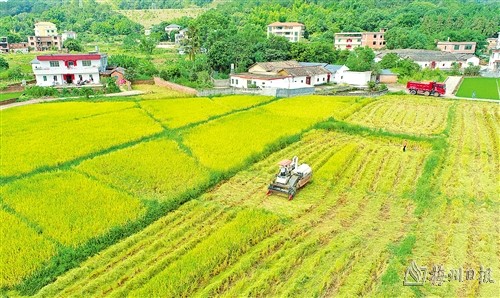 “我希望发挥好产业村长这一新身份,带领村民加快产业致富步伐。”广东恒粮农业发展有限公司负责人黄新良说。目前,位于大柘镇超竹村的优质丝苗米基地面积500多亩的早稻开镰收割,在收割机的来回穿梭作业下,实现颗粒归仓。