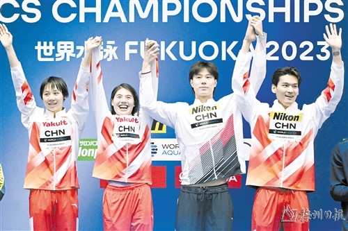 赛后张雨霏表示:“终于如愿以偿得到这枚金牌,跟预赛相比(决赛)换了3棒,说明中国队人才厚度不断提升,希望未来一年以及更长的时间内会越来越好。这次是我们三个‘90后’带了一个‘00后’程玉洁,未来是年轻人的,希望我们把‘交接棒’传承下去。”