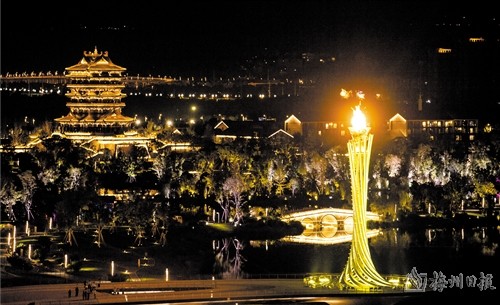 主火炬塔的火焰熊熊燃烧,照亮了全人类追求和平与发展的共同愿望,照亮了构建人类命运共同体的共同梦想!