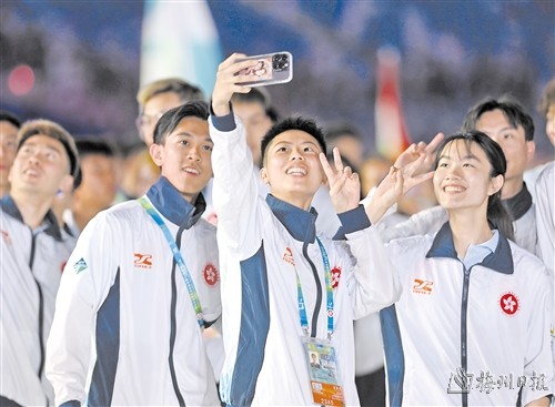 体育场内,悠扬清亮的童声响起,在《国旗国旗真美丽》的旋律中,五星红旗缓缓入场。