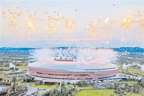 这是万众瞩目的时刻,象征着崇高体育精神的主火炬将在这里点燃。这是青春之歌高奏的时刻,五洲四海的大学生运动员们将以体育为纽带在这里聚首,放飞梦想,共筑友谊。