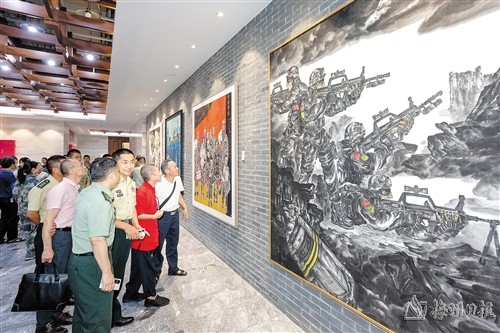 据了解,此次展览由梅州军分区联合梅州市委宣传部、市委统战部、市退役军人事务局等主办。展览以国防和强军为主题,结合开展“学习强军思想、建功强军事业”教育实践活动,广泛发动梅州社会各界、驻梅官兵和汕头、汕尾、潮州、揭阳军分区(警备区)官兵等踊跃投稿。经专家评审、精挑细选,展览共遴选出254件参展作品,包括书法、摄影、绘画等,是梅州近年来规模最大、作品数量最多的国防主题书画摄影展。