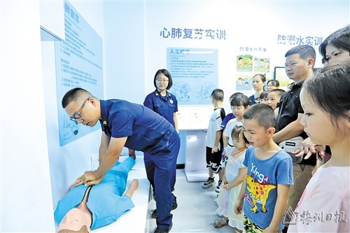 本报讯 (记者吴丽伶)日前,梅县区团委联合梅县区消防救援大队在梅县区应急消防科普教育基地举行“小手拉大手 安全伴我行”消防应急安全教育亲子体验活动,40多名家长和学生参加。