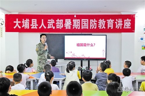 浓厚的宣传氛围是推动双拥工作健康发展的基础。走进校园开展宣讲活动,激发孩子们的爱国热情;组织开展征兵宣传进校园活动,引导学生到军营实现梦想……近年来,大埔县坚持把国防教育和双拥宣传作为双拥工作的“基础工程”来抓,广泛开展形式多样、内容丰富的国防教育宣传。大埔县组织民兵国防教育宣传队结合重大节日、年度征兵等时机,大力开展国防教育进机关、进学校、进社区等“五进”活动,并印发小初高三类国防教育画册,构建起全民国防教育大课堂。
