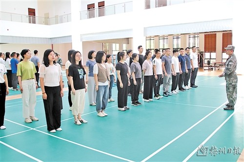 课上,杨润世围绕国防建设主题,以图文并茂的方式,深入浅出地为学员们讲授了当前的国防安全、面临的复杂形势以及当代青年干部在维护国家安全和国家利益中的使命担当。课后,大埔县人武部教官还为青年干部开展军姿、稍息立正、停止间转法、齐步正步走等基础科目的训练,在训练中培养战斗作风、厚植家国情怀。