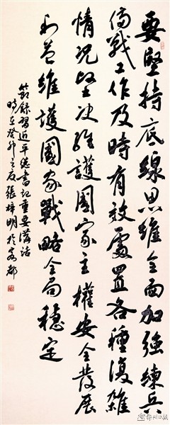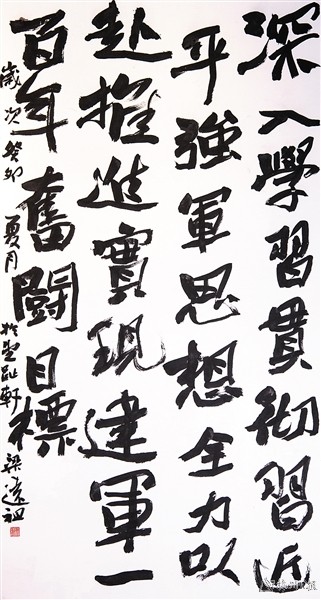 一张张行云流水的书法,一张张美轮美奂的画作,一个个精彩动人的瞬间,多角度展现出艺术家们饱满的热情,呈现出新时代军人风采,有效强化全民国防意识,激发社会爱国拥军情。现选登部分书画作品,与读者共同欣赏。