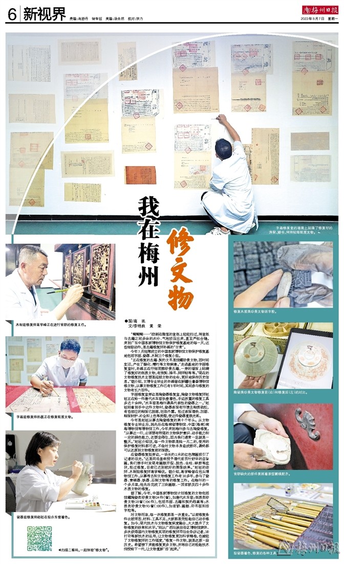 今年5月挂牌成立的中国客家博物馆文物保护修复基地包括字画、瓷器、木制三个修复小组。