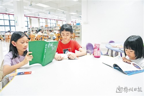 日前,记者踏进梅州市剑英图书馆,只见在少儿部的阅览室内,有的学生穿梭在书架间,挑选心仪的书籍,有的则安静伏案书写暑假作业。炎炎夏日里,清凉安静的图书馆成了他们“充电”的好去处,青少年们以书为伴,与知识同行,在浓浓的书香中静享“悦”读时光。“我经常下午跟同学一起来图书馆写语文、历史的暑假作业,这里环境比较好,比较有学习氛围。”即将上初二年级的梅县区高级中学学生唐诗琦说道。