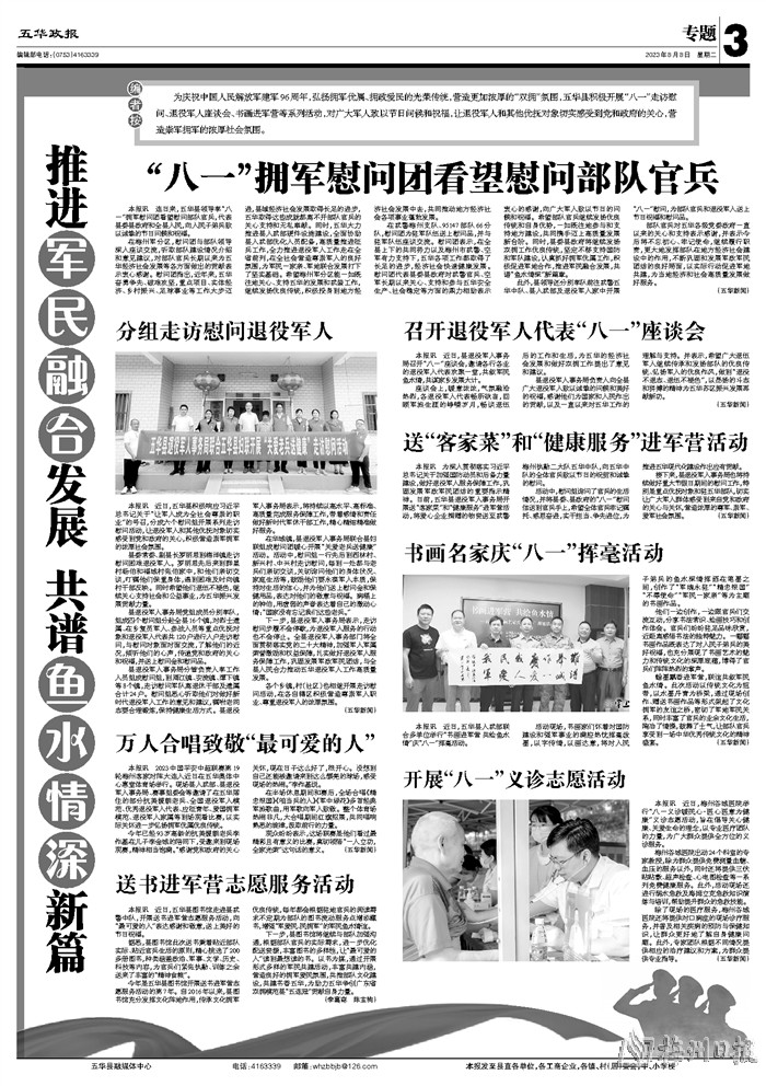 此外,县领导还分别率队前往武警五华中队、县人武部及退役军人家中开展“八一”慰问,为部队官兵和退役军人送上节日祝福和慰问品。