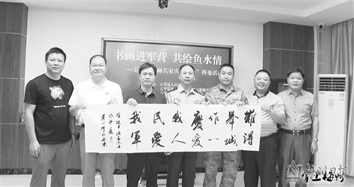 本报讯 近日,五华县人武部联合多单位举行“书画进军营 共绘鱼水情”庆“八一”挥毫活动。