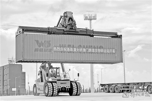 澳门特区政府经济及科技发展局8日举行港珠澳大桥澳门跨境货物转运站开幕仪式,这标志着由澳门特区政府投资建设的转运站正式投入使用,实现港澳两地货物陆路直达运输。