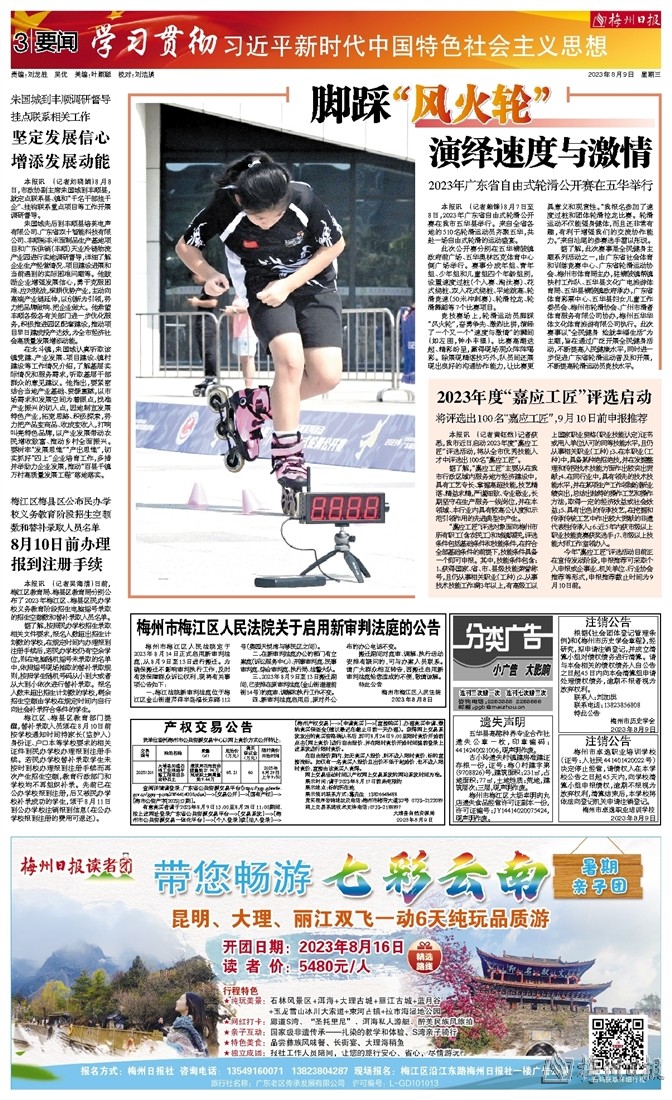 本报讯 (记者赖锋)8月7日至8日,2023年广东省自由式轮滑公开赛在我市五华县举行。来自全省各地的510名轮滑运动员齐聚五华,共赴一场自由式轮滑的运动盛宴。