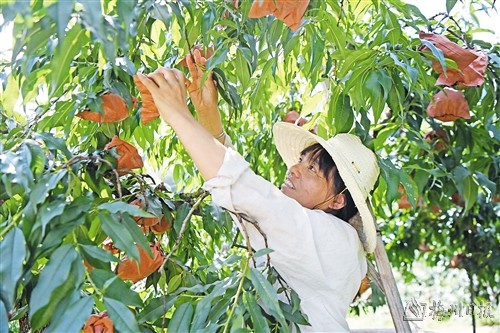 8月8日,桃农在炎陵县下村乡坳头村采摘黄桃。