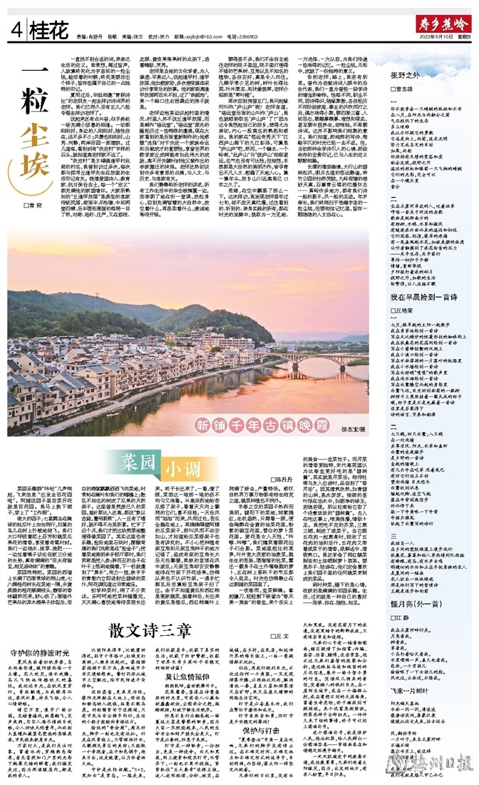 长潭的清凉幽境,大行山的碧涧松风,明月古道的悠远静谧,浒竹公园的怡然凭眺,九岭荷塘的卷舒天真,石寨青云塔的烂漫怀古…… 蕉岭许多地方,都有我们诗一般的影子,风一般的足迹。年岁渐长,我们终将归于浩瀚宇宙的一粒尘埃,但要相信记忆里,留存一颗隐隐的人文自在心。