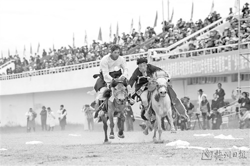 近日,西藏自治区那曲市恰青赛马节开幕,马术表演、文艺演出等活动吸引众多群众参与。(新华社发)