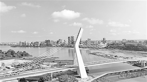 由中国路桥工程有限责任公司(中国路桥)承建的科特迪瓦经济首都阿比让科科迪斜拉桥项目12日竣工通车。科科迪桥项目主线总长约1.63公里,其中主桥为钢槽梁单塔斜拉形式,全长630米、主跨长200米、主塔高108.6米。