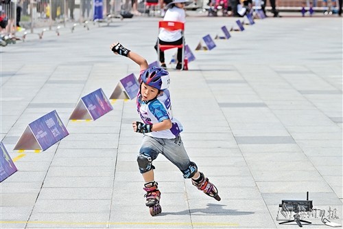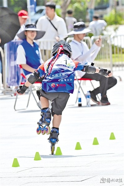 赛事设有成年组、青年组、少年组和儿童组四个年龄组别,有速度过桩(个人赛、淘汰赛)、花式绕桩、双人花式绕桩、平地跳高、轮滑竞速(50 米冲刺赛)、轮滑拉龙、轮滑舞蹈等7个比赛项目。参赛选手年龄从几岁跨越到二十几岁,项目设置多、种类丰富,赛场上除了有你追我赶的紧张刺激,还有乐趣横生的轻松瞬间、团结协作的默契,让比赛更有看头,更有意义。