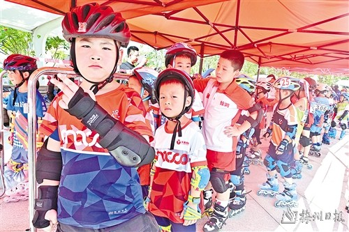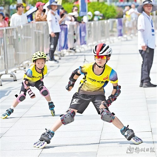 因为参赛选手年龄普遍较小,所以他们当中很多都是父母、教练带着来参赛的。赛道隔离栏外,站满了为选手加油呐喊的家长,一双双期盼的眼神,一声声有力的鼓励,让现场的气氛更加浓厚有力,充满温暖爱意。“学轮滑不仅锻炼身体,还非常有趣,能增强团队意识。孩子非常喜欢,所以我们也非常支持,只要有比赛、有时间,我们都会带着孩子来参加。”来自汕尾的家长许女士告诉记者,此次带孩子来到五华参赛,自己和孩子也感受到组委会为赛事做足的保障和服务,以及“足球之乡”的魅力和热情,体验非常好。