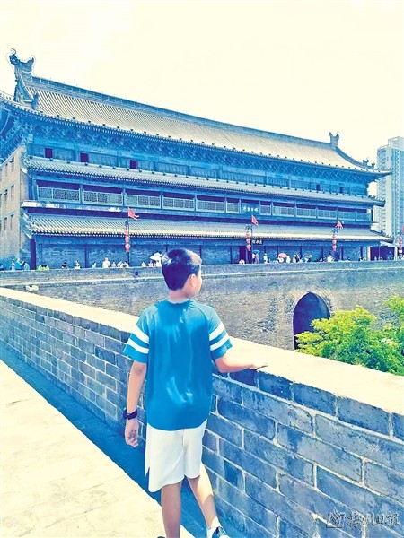 我漫步在西安城的城墙上,仿佛回到两千多年前的战场。抬手抚上泛着青苔的石砖,手指轻轻触摸着墙体的道道裂痕、条条沟痕,我的指尖好像流淌着历史的尘埃。刹那间,我仿佛又看见盛唐的繁华、盛唐的陨落,又仿佛我正在和古人进行跨时空的对话,从开元盛世诉说到二十一世纪的今天。
