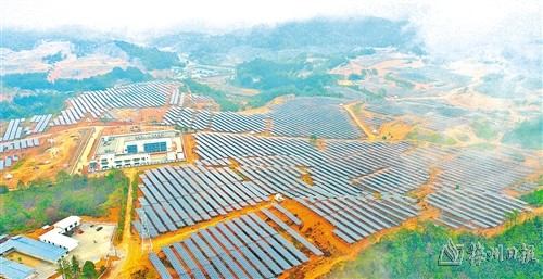 2021年7月,平远县引进广东能源集团,在仁居、差干利用周边贫瘠劣地及废弃矿区进行光伏复合项目建设,项目一区位于黄畲废旧稀土矿区,规划建设容量400MW,总投资约20亿元,规划安装约75万块565Wp单晶硅组件,一座升压站,141个方阵。项目于2022年12月29日正式与广东电网完成首个方阵并网工作,顺利实现发电。全部并网后,年平均发电量为4.3亿kWh,纳税约2900万元,减少排放二氧化碳36.11万吨、二氧化硫0.27万吨、氮氧化物900吨。