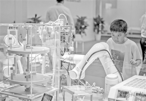 8月16日至22日,2023世界机器人大会在京举办。本届大会打破传统策展思路,从应用需求端为导向,推出“机器人+应用场景”的展览模式,在展示机器人产品最前沿技术的同时,也让观众直观地感受机器人技术发展为生产生活带来的变化。(新华社发)