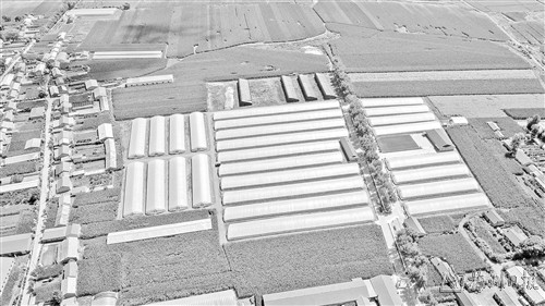 这是在吉林省德惠市朱城子镇沿河村拍摄的程雪家庭农场玫瑰大棚(8月17日摄,无人机照片)。