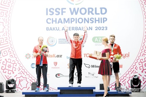 当日,在阿塞拜疆巴库举行的国际射击联合会2023年射击世锦赛男子10米气手枪决赛中,中国选手张博文以244.3环的总成绩获得冠军。