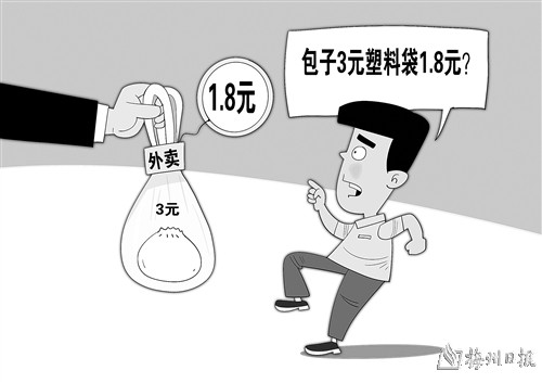 “一个包子才3元多,外卖装包子的塑料袋打包费就要1.8元。”“付了5个包装袋的费用,却只给一个包装袋。”……近日,针对广受诟病的外卖打包费过高问题,江苏省消保委发文建议,外卖平台针对打包费要完善机制,明确打包费定价标准。而早在今年6月,上海市消保委也曾呼吁,尽快制定外卖包装费的收取规则,把外卖包装的选择权交给消费者。朱慧卿/图