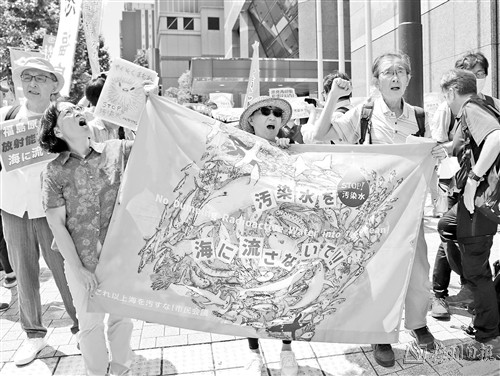 抗议民众中73岁的宇野佐知子表示,在福岛核事故后,又开始将核污染水排海,这是“双重加害”。她表示,东电公司声称所排核污染水的放射性物质浓度符合标准,这完全不可信,“连测量仪器本身的可靠性都值得怀疑”。