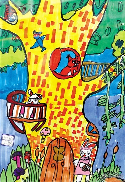 | 《大树屋》(儿童画) 丘婧萱 |