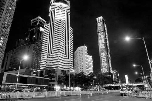 8月26日是深圳经济特区成立43周年。25日晚,深圳以夜空为幕,以灯光为笔,点亮市区主要建筑为特区庆生。