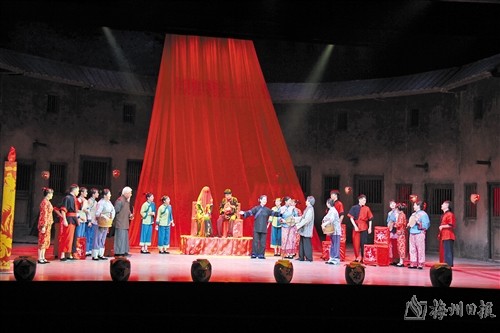 本报讯 (记者黄钰然 通讯员刘志玲)今年是梅州市山歌剧团(今梅州市客家山歌传承保护中心)成立65周年。为庆祝这一盛事,市客家山歌传承保护中心专门策划了系列惠民演出活动。8月26日晚,市客家山歌传承保护中心山歌剧场上演经典客家山歌剧《等郎妹》(如上图,黄钰然摄),将连演四晚,回馈广大戏迷。