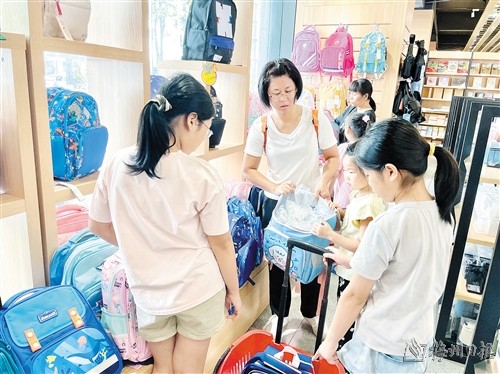 今年秋季开学进入倒计时,“开学经济”悄然升温。为迎接新学年,许多家长和学生忙着添购新用品(如上图,吴海清摄),各大商超和书店、文具店迎来了一波消费热潮。