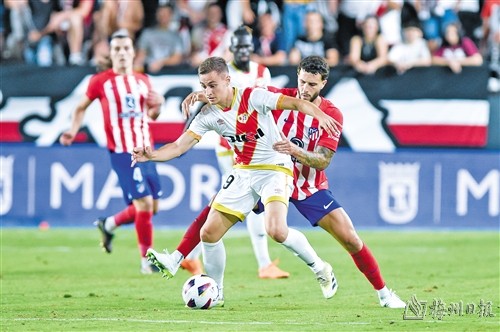 当日,在2023-2024赛季西班牙足球甲级联赛第三轮比赛中,马德里竞技队客场以7比0战胜巴列卡诺队。 (新华社发)