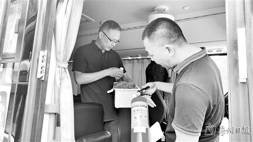 30日,记者在梅县区公安局交通警察大队看到,民警和梅县区教育局工作人员正逐一对辖区学校参检校车驾驶员资质、GPS、行驶路线等相关情况进行核对,并逐车认真查看安全锤、急救箱、灭火器、停车指示牌等设备是否正常,全力确保校车设施齐全、安全状况良好(如图,陈坚平摄)。