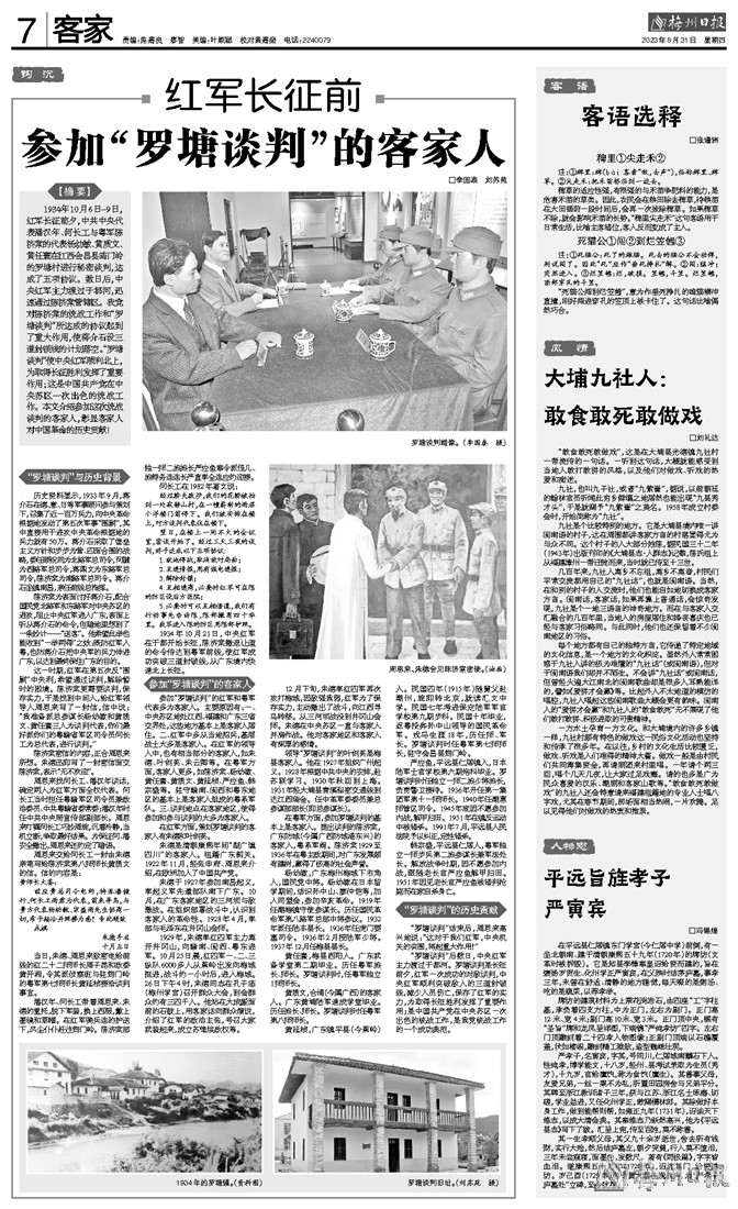 领导“罗塘谈判”的叶剑英是梅县客家人。他在1927年组织广州起义。1928年根据中共中央的安排,赴苏联学习。1930年秋回到上海。1931年经大埔县青溪秘密交通线到达江西瑞金。任中革军委委员兼总参谋部部长(即总参谋长)。