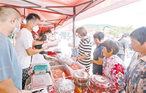 在激发线下消费活力的同时,圩日活动也为企业进一步打响了知名度。在蕉岭县众创投资开发有限公司展位,记者看到有淮山米粉、即食香菇、富硒腐竹等蕉岭特色农产品,“我们是国有独资企业,由新铺镇政府监管,主要是为蕉岭的特色农产品搭建一个销售平台,此次参加圩日活动也是为了打响知名度,拓展新的市场。”该公司负责人张永兴介绍道。蕉岭县长寿丹青生态农业有限公司负责人陈丹华说:“我们主要是以推介为主,有柚子、柚花茶、柚子皮蜜饯、蜂蜜等产品,希望让更多人了解世界长寿乡味道、爱上寿乡特产。”