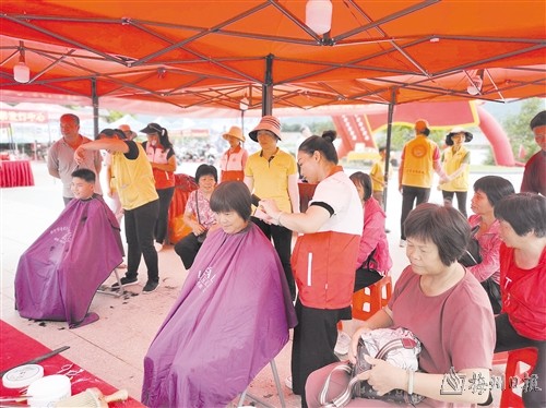 在逛圩的同时,还能顺便免费剪头发和检查身体,群众连连夸赞:“这样的活动要多来几场。”8月31日,在新铺镇滨水公园开展的爱心公益活动现场,志愿者们凭着娴熟的手法,根据每个人的需求贴心地为群众设计适合的发型,不一会儿,原本有些凌乱的头发变得干净、整齐,看上去精神抖擞、面貌焕然一新。活动现场还开展全民健康乡村行,东山医院医生为前来就诊的群众提供免费量血压、测血糖、健康咨询等服务。