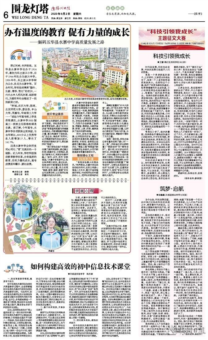 琴江河畔,书声琅琅。五华县水寨中学创办于1914年,最初为私立振兴小学,后于1944年改办为振兴中学。1950年冬,私立振兴中学转为公办,改名为水寨中学。百余年间,学校始终秉承“勤朴、弘毅、博学、笃行”的校训,一代代水中人栉风沐雨、砥砺前行,为高校和社会输送了一批批栋梁之材。