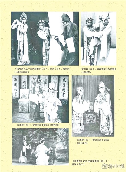 新中国成立后的1953年间,曾谋老师投身梅县艺光汉剧团,担任小生主角,与年轻的旦角梁素珍在舞台搭档,双星献艺,名扬四方。1956年,大埔民声与艺光两团合并为广东汉剧团,分一团和二团。一团有黄桂珠、黄粦传、曾谋、梁素珍四位擎天玉柱担纲,一时名噪南北,誉满岭东及海外。