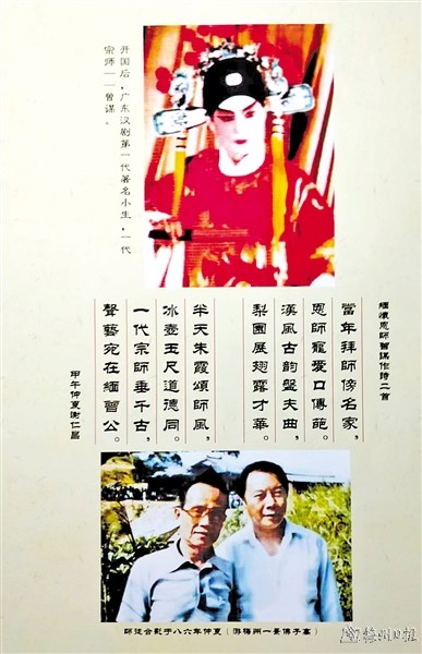 1980年,我由县级剧团调入广东汉剧院一团,担纲小生角,在组织的安排下正式拜曾谋为师,师徒感情日益加深。我又与梁素珍院长拍档演出,进一步得到梁院长艺术上的指点。经过一段时间的打磨,我的舞台技艺飞跃提升,短短时间内,将师父所演出的剧目悉数熟练掌握,顺利接班。那时我们师徒同吃同住,形影不离。他演出之时,我帮着他上妆、斟茶倒水,尽心侍奉;生活上尽我所能加以照顾,师徒座谈中三句不离本行,有时也会闲谈家常。