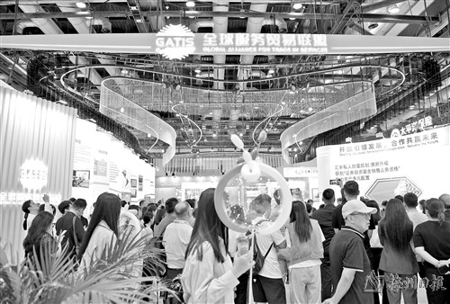 9月4日,观众在服贸会的全球服务贸易联盟展台参观。