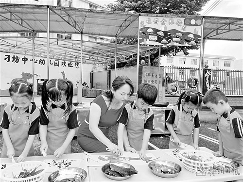 教育理念不断推陈出新,必须不断加强自我提升,保持常“新”常“青”,在课程设置、改革创新等方面要做到“先一步、高一等、优一层”,这是刘苑欣在多年工作中总结的经验,也是她带领刁坊中心幼儿园不断前进的秘诀。多年来,刘苑欣全身心投入教育教学工作中,时刻关注着先进教学模式,并结合本土实际进行借鉴吸收。她引导教师将知识设计成游戏,积极推动健康、语言等五大领域课程与优秀传统文化相融合的园本特色课程的发展,目前园内共开设了舞龙、舞狮、客家童谣、武术、生活实践课程等10多项园本课程,开展了丰富多彩的主题活动。