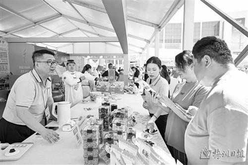9月6日,参展商(左一)在第四届中国—蒙古国博览会上介绍商品。