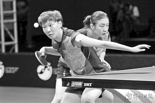9月10日,王曼昱/陈梦(右)在比赛中。